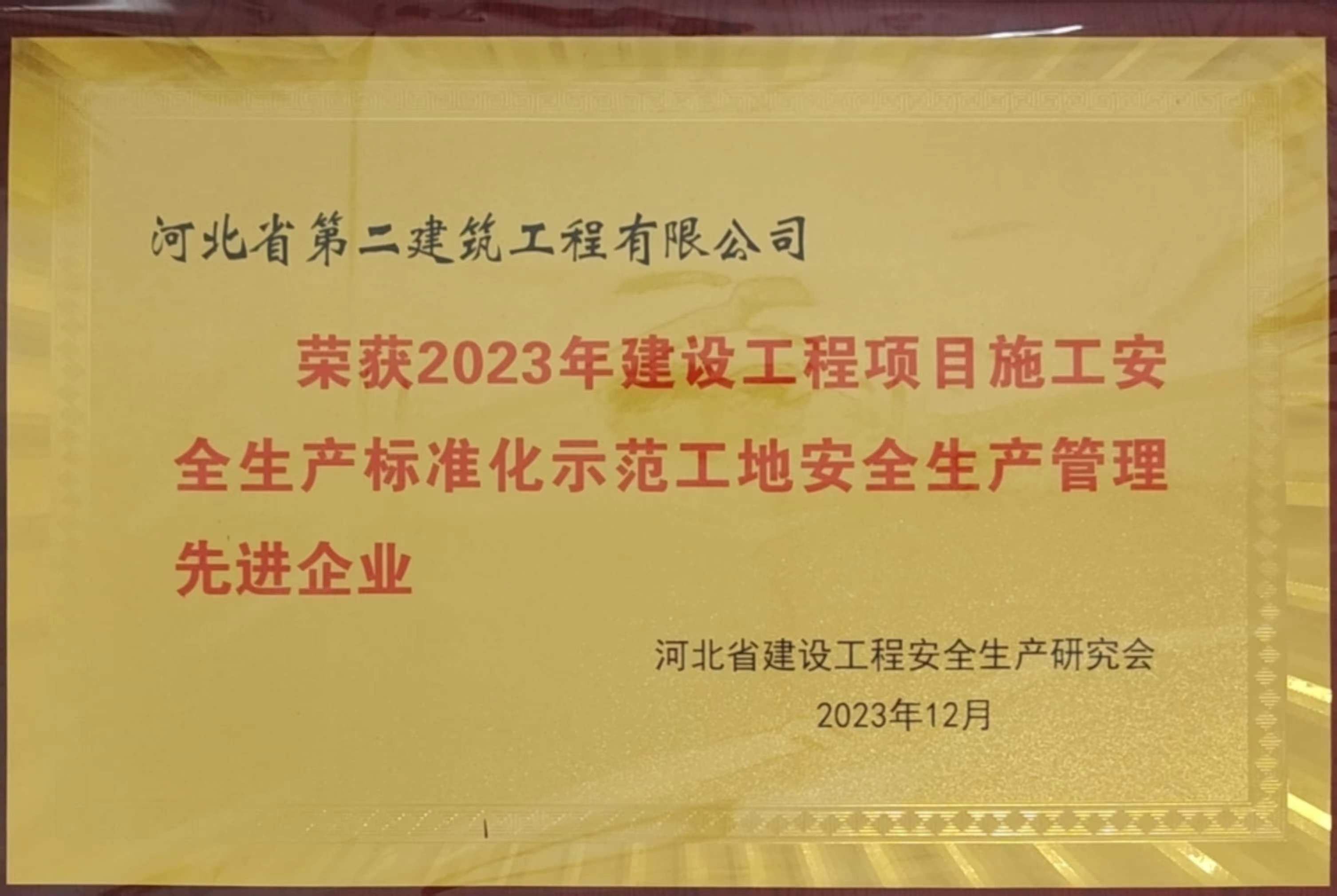 公司荣获2023年度河北省建设工程招标投标工作先进单位
