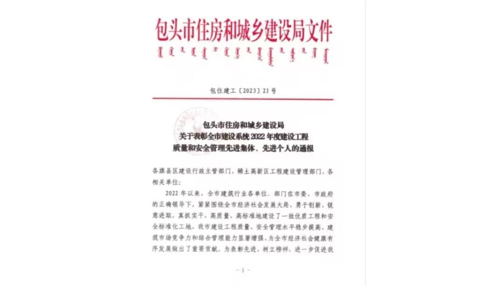 河北二建:九分公司内蒙古农业大学项目荣获包头市“2022年度建设工程质量和安全管理先进集体”荣誉称号