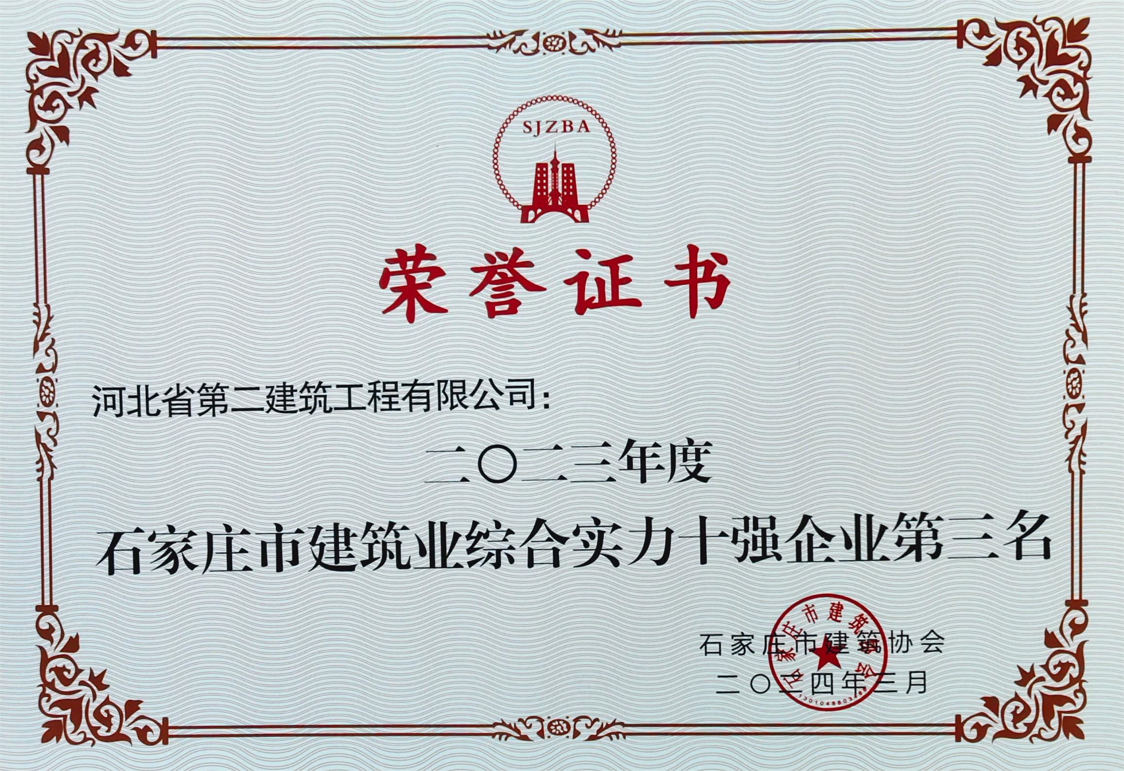 2023年度石家庄市建筑业综合实力十强企业第三名